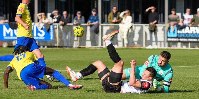 And his players responded in just the right fashion against an Eastbourne Town side who, like Deal, are still getting acclimatised to playing at a higher level after winning promotion from the Southern Combination League last season. The visitors began brightly enough on Saturday and almost went in front when Marcin Ruda saw his 11th-minute strike pushed onto the bar and away by Deal 'keeper Adam Molloy.