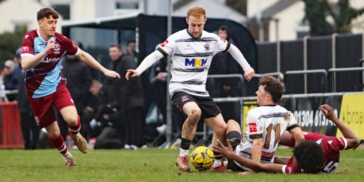 Deal Town played Hastings United Football Club on 21st February 2026 in the Isthmian League South East Division. Deal Town won three - nil against Hastings United in front of a crowd of 481 at the Charles Ground. The Deal goals came from Jamie Kennedy (2) and Owen Wilkinson.
