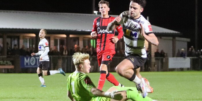 Ashford came out the stronger of the two sides, with manage Hume clearly demanding a better start from the Nuts & Bolts. They had a penalty appeal for handball waived away (46’), strong strike from distance saved (50’) as well as another shot at goal from the edge of the penalty area (52’); all testing the resilience of Deal’s defence.