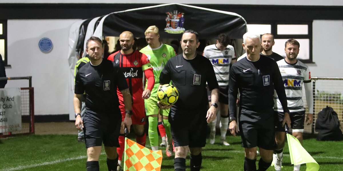 Prior to KO, a minute of silence was impeccably observed in memory of Arthur ‘Tippy’ Prior; it was Ashford United who got the game underway when referee hit the whistle to kick-off. It was less than ten seconds before the referee was using it again; the ball played forward and AU’s Hume penalised for an apparent elbow on Penny. Once parity was restored, it was only a yellow card issued.