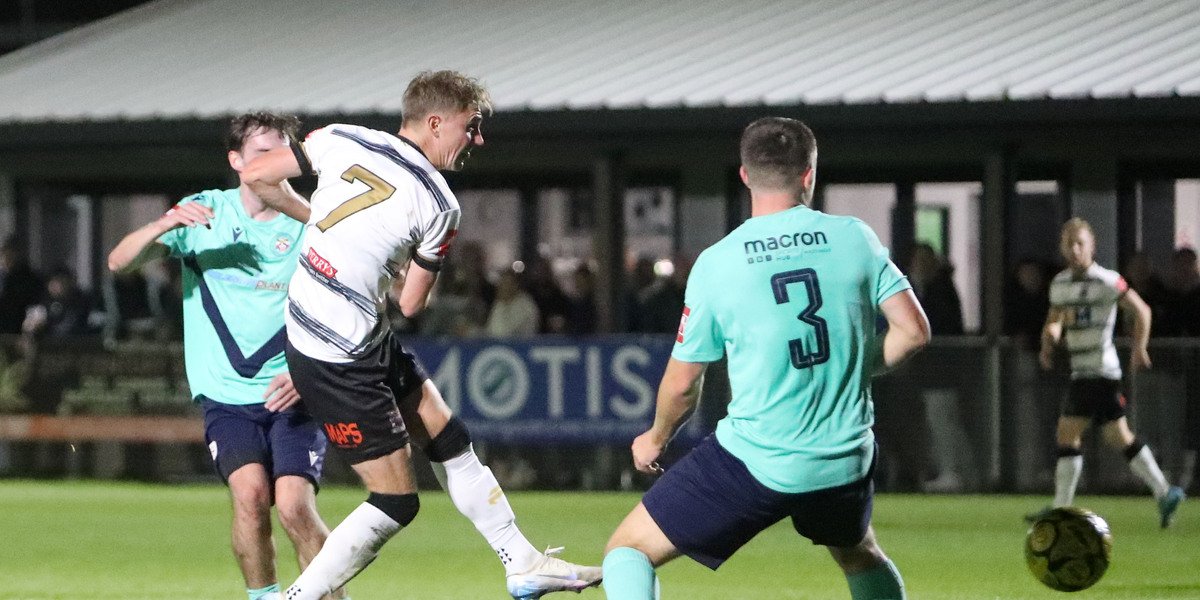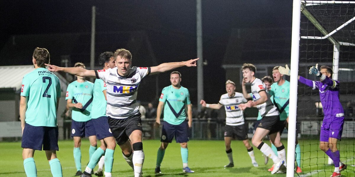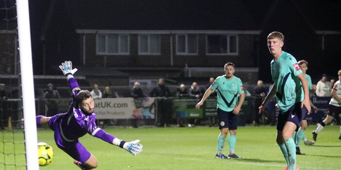 The deadlock was finally broken after some sustained pressure. A fumble by the Eastbourne keeper allowed Foster to send a composed volley into the inside netting (20’). Minutes.