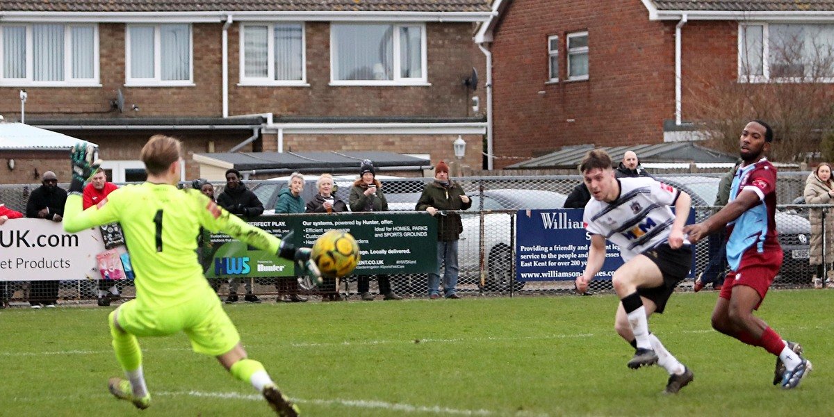 Deal Town played Hastings United Football Club on 21st February 2026 in the Isthmian League South East Division. Deal Town won three - nil against Hastings United in front of a crowd of 481 at the Charles Ground. The Deal goals came from Jamie Kennedy (2) and Owen Wilkinson.